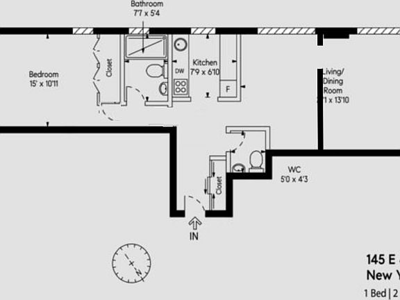 Unit 17F is a sun-drenched corner apartment with South, East, and North-facing windows, delivering an abundance of natural light throughout the day. Currently configured as a Junior-4 with a pressure wall in the living roomperfect for a home office or guest spacethe layout can be restored to a large open 1-bedroom at the tenant's request.