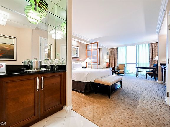 Panoramic mountain side suite in the most preferred Tower One showcasing an amazing views of Tower 1 & MGM Grand pool views! The fully furnished turnkey suite features a kitchenette with high-end stainless-steel appliances, a two-burner stove, microwave, refrigerator, sink with granite countertops. Built-in entertainment center, closet with safe and extra bedding. Large bathroom with double sinks, jacuzzi tub, and walk-in shower. The unit comfortably sleeps four, with a luxurious king bed and pullout sleeper couch. MGM Signature's 3 private, heated pools, spas, and cabanas. Lounge with full bar, gym, valet, concierge, Starbucks, and laundry! Connected to MGM Grand, Wet Republic Ultra Pool, Lazy River, several high-end restaurants, casino, and MGM Grand Spa. The onsite rental program, AIRBNB, or third-party rental program is available.