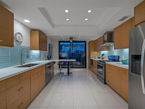 Vista Canyon is on FEE LAND! A prime South Palm Springs location with dramatic mountain views in a stately, tranquil setting. Featured for Modernism 2025, this wonderful development offers fine architecture, gated security and attractive landscaping with pools, spas and tennis court. This one is sleek, modern and very tasteful. Updated windows, doors, glass! Porcelain tile floors and a beautiful kitchen fitted and finished for the modern connoisseur. Primary suite AND an office or bedroom suite on the first floor.Additional guest suite with awesome viewing deck on the upper floor. Lighting, plumbing and systems have been upgraded. Private back yard with option for a pool and spa. Very open and bright with generous entertaining spaces. This is ready for full time residence or an excellent seasonal retreat.