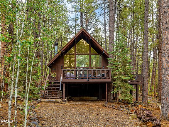 Have you been searching for the perfect mountain getaway? Look no further! This charming, fully updated A-frame cabin is what dreams are made of. The light-filled home features soaring ceilings, modern finishes, and a cozy wood stove for those crisp high-country nights. There is plenty of space for you and your guests, especially on the wraparound deck surrounded by tall pines. Whether you're seeking a family retreat or a turnkey vacation rental - this cabin offers comfort, style, and unbeatable forest vibes!