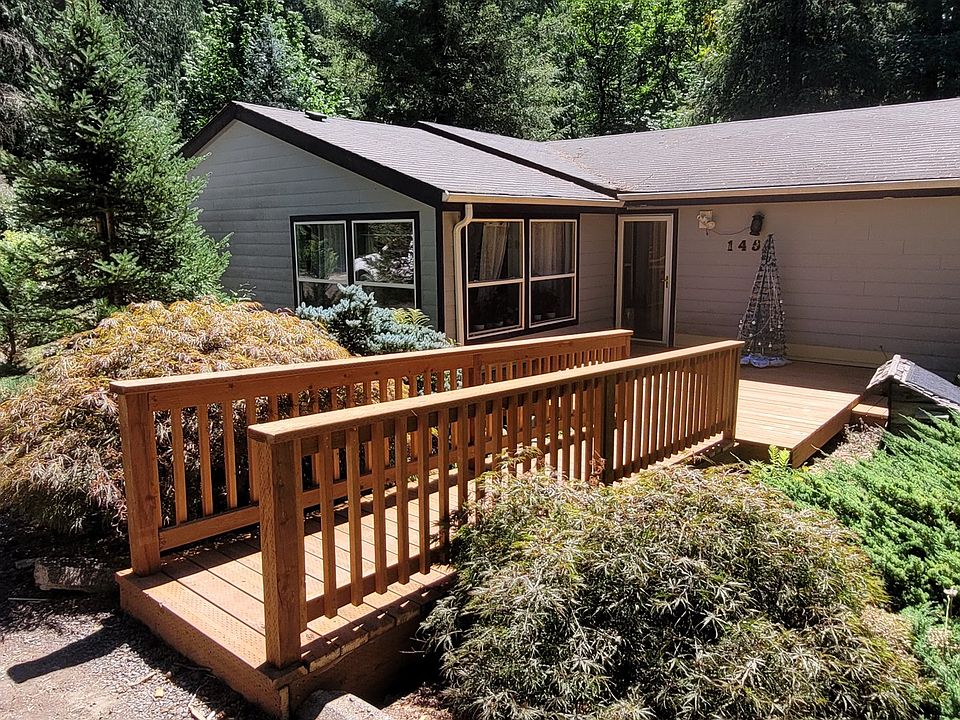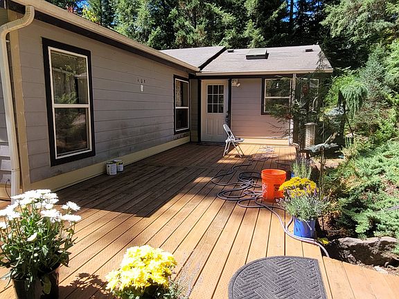 Endless potential—live in or invest! This 3 bed, 2 bath home sits on a private lot with a peaceful creek and is ready for your updates. Whether you're an investor seeking a solid value-add opportunity or a homeowner with a vision, this property offers serious upside. The spacious layout includes an open living/dining area, kitchen with island and skylight, and a primary suite with walk-in closet and garden tub. Additional highlights: a 3-car shop with wood workshop and a detached 10x20 studio with sink and toilet. Just minutes from the lake—bring your tools and imagination!