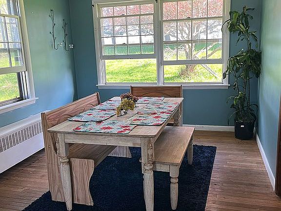 This home is has 3 levels. lower level has a family room with a high end efficient woodstove. A room down there is your laundry room/utility area. The first floor has a kitchen, Dining and living room. The upper level or second floor has the full bath and 3 bedrooms. The half bath is located on the first floor. Three sources of heat. Pellet stove in livingroom, woodstove family room. Gas fired boiler. Home underwent a full renovation in 2022. New roof and new windows 2025!