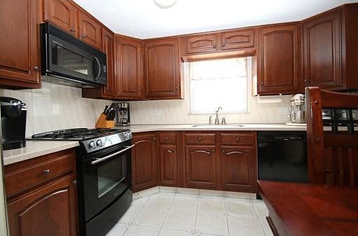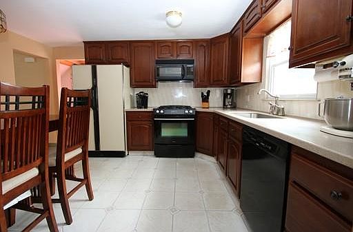 Fabulous 8 room, three bedroom 1 1/2 bath Garrison Colonial offers spacious living room with fireplace, updated eat in kitchen with 36"cherry cabinets and Corian counter tops, formal dining room opens to first floor family room with sliders to deck. Upper level offers three bedrooms all with double closets and full bathroom. Hardwood floors throughout, fenced in yard with peach and apple trees. Two driveways offers off street parking for four cars.