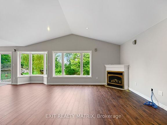 NEW LAMINATE FLOORING AND FRESHLY PAINTED. This 4 bedroom/3Bathroom raised bungalow is MOVE-IN READY awaiting your personal touches after new flooring in the living, dining and kitchen, accented with fresh painting on the main level. Let the sunshine in with enlarged windows facing a breathtaking 60+ acres of pathways and trails ideal for morning walks and sunset strolls! Enjoy ultimate tranquility and a higher quality of life living in a very desirable neighborhood in Gananoque in one of Ontario's most sought after waterfront communities known for its charm and beauty. Positioned on a spacious corner lot, this home includes a backyard deck that overlooks a garden oasis. This home is perfect for retirees with grandchildren, growing families, and first-time homebuyers looking for more value. Kingstonian's will receive more house for their budget made possible with the short drive to Kingston. The custom design is totally unique with multiple Bay windows and Octagon port windows to maximize ample sunlight. Enjoy the gas fireplace, multiple pot lights and surround sound speakers filling the living room with cathedral ceilings. The kitchen showcases ample cabinet space, island with double sinks and dishwasher, and 3 appliances, patio doors leading to the two-level backyard deck, ideal for BBQ's and morning coffee. The spacious master bedroom with walk-in closet and 3-piece ensuite with shower. The main level also includes the second bedroom with closet, 3 piece bathroom with shower, laundry room, and access to the two car garage and workshop. The lower level offers two additional bedrooms, family room, 4-piece bathroom, a large partly finished storage room and crawl space storage. Convenient central vacuum throughout the house. Homes do not often come available on this street. Some photos virtually staged.