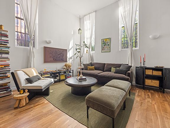 Spacious one-bedroom, two-bathroom duplex apartment with an enormous recreation space on the lower level. Features include in-unit washer & dryer, independent heating and cooling in each room, and soaring 12'3" ceilings.