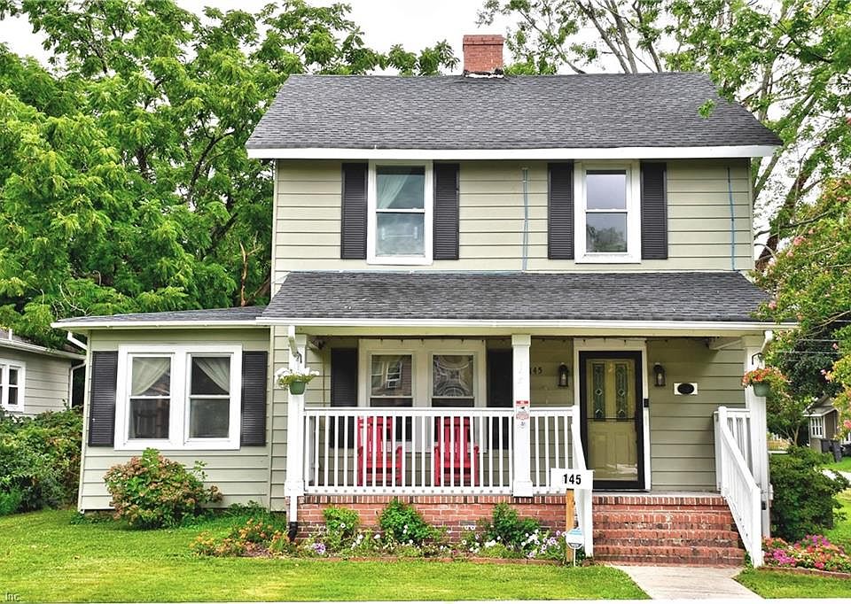 Come see this lovely home on the Old Wythe neighborhood historic register. Over 2000 sq ft with numerous upgrades in sustainability, efficiency, and safety. First floor features a welcoming living room with wood-burning fireplace, hardwood floors and arched passageway into a dining room and lovely sun room. Kitchen has butcher block countertops, closable bench seating, and stainless appliances. Primary bedroom is on the first floor with a separate mini-split system, dual-vanity, and garden tub. The second floor features a nice loft area for study, and two well-sized bedrooms with separately zoned heat pump. Efficiency upgrades include solar electric panels, tankless water heater, radiant barrier and insulation in attic. Also included are a new 200 amp panel, full Cat 8 ethernet wiring and security system, and new paint throughout. Community pool is a block away (no HOA, but $25/yr donation), as is scenic Chesapeake Ave overlooking the Monitor-Merrimack battle site.