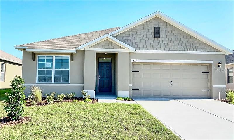 Under Construction. This floor plan is perfect for cooking in the kitchen while entertaining your family and friends or enjoying the morning coffee on the covered lanai. This home features 18x18 ceramic tiles in the foyer, kitchen, bathroom, and laundry room. The split floor plan offers a large master bedroom and en-suite with double sinks, shower, and large walk in closet. Advanced building practices and products used that are designed for energy efficiency and to help you save money. Smart technology also included in the home includes video doorbell, programmable front door lamp, smart home hub, Alexa voice control, programmable door lock and thermostats all controllable with your phone app or wall panel. *Photos are of similar model but not that of exact house. Please note that no representations or warranties are made regarding school districts or school assignments; you should conduct your own investigation regarding current and future schools and school boundaries.*