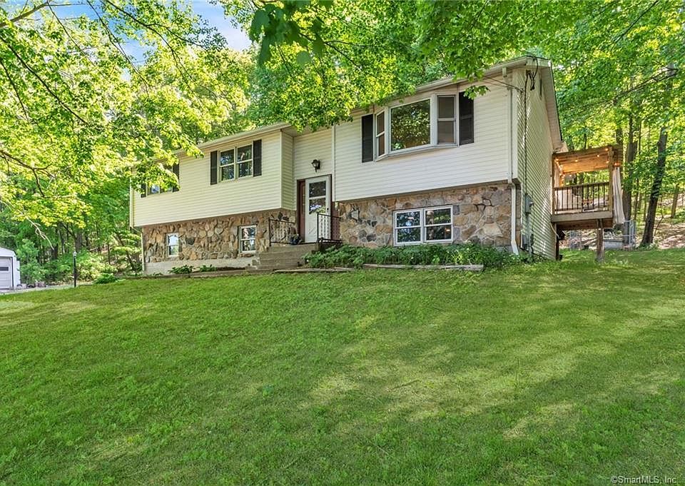 Welcome to this charming raised ranch located in Stafford, CT. This home offers a comfortable and spacious living environment with three bedrooms, two full bathrooms, and a finished basement area. The main level features a well-designed floor plan that seamlessly flows from room to room. The living area boasts a cozy family room that offers picturesque views of the majestic mountains. The kitchen is a chef's delight, equipped with modern appliances, ample cabinet space, wine fridge and a convenient breakfast bar. Adjacent to the kitchen, you'll find a spacious dining area where you can gather for memorable meals and lively conversations. The master bedroom is a peaceful retreat with its own en-suite bathroom. The remaining two bedrooms are equally well-appointed, providing ample space. One of the standout features of this home is the deck and balcony. The deck is the ideal place to host summer barbecues or simply unwind while enjoying the gentle breeze and fresh air. The balcony provides an elevated perspective of the surrounding mountains, allowing you to start your day with a cup of coffee while admiring the natural beauty. Additionally, the finished basement area adds valuable living space to the home. This versatile area can be used as a recreation room, home office, or an additional family room, offering endless possibilities to suit your lifestyle. Don't miss the opportunity to make this wonderful house your new home. ***Highest and best due by Tue., 5/23 at 7PM***