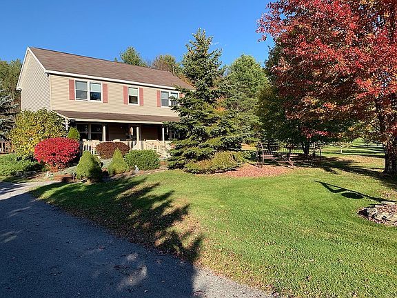 Here is everything you are LOOKING for in an UPSATE HOME! Be it a full time residence or a get away with all the comforts you dont want to give up!! This BEAUTIFULLY maintained home has a wonderful kitchen with Stainless Steel appliances and an island for cozy family meals. It is open into the dining room for overflow of guests. You have 4 Bedrooms, 21/2 baths. Full basement with woodstove for that wonderfull heat you need on a chilly winters day. Outside the property already is lovingly landscaped by the owners and their care shows. You have your pond with flowers all season long, to fish or swim in. There are perennials and raised garden beds, fruit trees and bushes (apple, pear, blueberry and raspberries). For the enthusiast there is your own shooting range and a 28x40 garage with its own lift for the car and upstate toy collector. From your front porch your view is spectatular and even though everyone on your road keeps their home just as nice as yours you dont see any of them!!! Come and enjoy the Mountains....