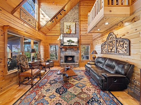 Experience your own private, turn-key furnished retreat nestled within an exclusive gated community. For those with a spirit of adventure, nearby USFS land provides ample opportunities for hiking and biking, while the Toccoa River—just a 10-minute drive away—offers kayaking and fly fishing. This custom-built 3-bedroom, 3-bathroom log lodge, situated less than 20 minutes from Blue Ridge, boasts stunning long-range mountain and sunset views. The great room impresses with its grand fireplace and exposed beams, and the modern kitchen features granite countertops and stainless steel appliances. With a convenient main-level laundry room and a spacious master suite complete with a loft, this cabin holds endless possibilities as a rental property, a second home, or your primary residence!