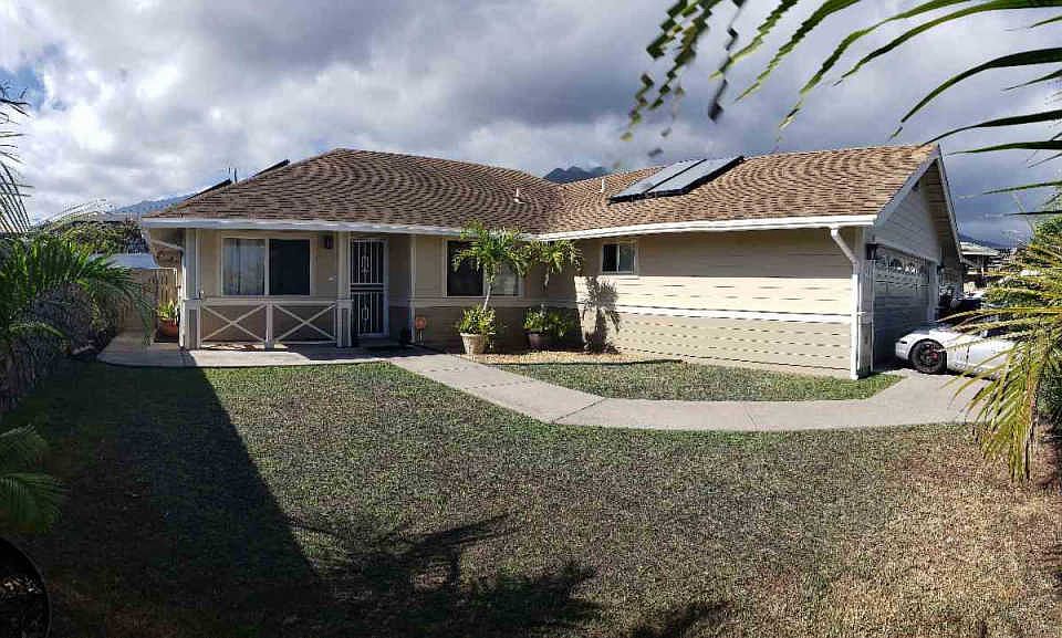 **E Komo Mai to Wailuku Parkside!** In the heart of Wailuku, this quaint neighborhood consisting of 119 homes was built in 2001. Our featured property is a 3 bedroom, 2 bath residence, upgraded with luxury vinyl plank flooring throughout, 3 split air conditioning units to keep cool. Kitchen appointments include soft close kitchen cabinets and drawers, tiled backsplash, motion sensor kitchen faucet, Whirlpool appliances package includes a "smart" range, low profile microwave and filtered hot water dispenser. Home is complete with rain gutters, solar water heater and a 22-panel leased photovoltaic system. High ceilings compliment the spaciousness of this floor plan that includes a separate living room, great room with dining area off the kitchen, an enclosed 22'x14' extension, and a 12'x12' covered lanai (both are unpermitted) but such a benefit to have the extra space maybe for a home office or study area. The choice is yours. The huge backyard is a blank canvas with space to grow fruits or vegetables, extra concrete slab poured for storage shed or whatever you desire the space to be. The lot size is 6,954 square feet (one of the larger ones in the subdivision) and surrounded by a gorgeous rock wall along it's perimeter. All showings by appointment only so call your favorite REALTOR, today!