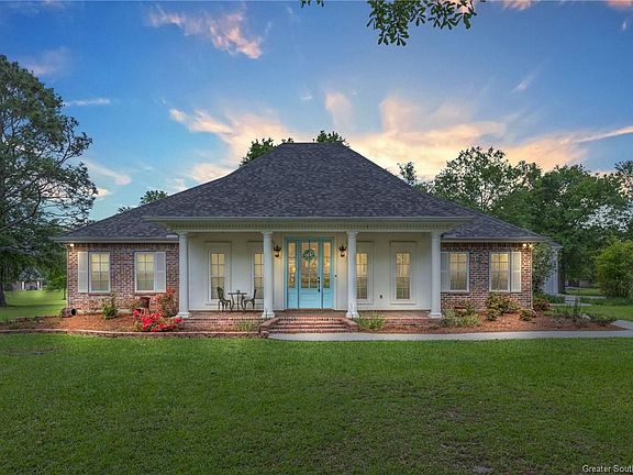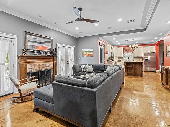 Southern charm meets modern comfort in this custom-built, one-owner home nestled on a beautifully landscaped, tree-shaded .99 acre lot in Ragley. From the moment you arrive, the classic curb appeal--with a welcoming front porch, brick accents, and twin columns--sets the tone for the warmth and elegance found throughout. Inside, you're greeted by a bright and open floorplan with 9- and 10-foot ceilings, polished concrete floors, and a warm, inviting foyer that flows effortlessly into the spacious living room. The wood-burning fireplace with a custom mantle and exposed brick surround creates the perfect focal point for cozy gatherings. The heart of the home is the kitchen, featuring custom cabinetry, granite countertops, a large center island with seating and stainless steel appliances. A formal dining area with picture windows overlooks the expansive front lawn, while a large laundry room with granite counters and extra storage adds everyday convenience. This home offers 3 large bedrooms, 2 bathrooms, plus a bonus office/flex room that could serve as a 4th bedroom, nursery, or study. The luxurious master suite includes dual vanities, his-and-her walk-in closets, a clawfoot soaking tub, and a walk-in shower--your own private retreat. Enjoy peace of mind with a new roof installed in 2021 and all new windows replaced in 2025. Step outside to the show-stopping back patio, complete with a custom brick fireplace, outdoor dining space, and mature trees offering natural shade. It's the perfect setting for entertaining or relaxing with family. The property also features an incredible 1,280 sq ft detached workshop/mancave, built in 2010, with a large recreation area, movable island bar, half bath, and a second bay ideal for a workshop or RV/boat storage with oversized roll-up doors and 50 amp electrical service. This versatile space could easily be converted into an outdoor kitchen, guest quarters, or second living area. Located in Flood Zone X, so no flood insurance is required. This stunning home truly checks every box--privacy, beauty, quality construction, and flexible space for whatever your lifestyle needs. Schedule your showing today and experience country living at its finest!