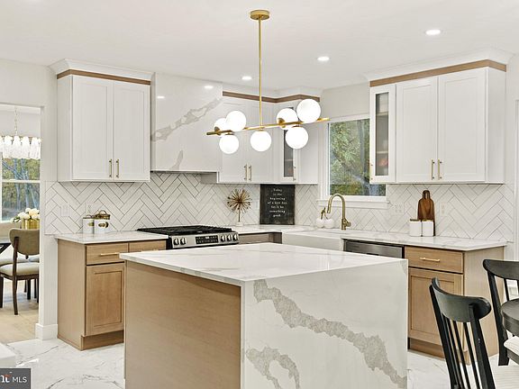 A Rare Opportunity to Own a True Showstopper in Cherry Hill! Fully renovated from top to bottom, this stunning 4-bedroom, 2.5-bath colonial sits on a quiet, winding street in the sought-after Surrey Place East neighborhood, redefining modern luxury. From the beautifully landscaped grounds to the grand double-door entrance, every detail makes a statement. The entry sets the tone with a soaring foyer illuminated by a dazzling chandelier and framed by elegant tile and gleaming hardwood floors. Every element throughout the home has been thoughtfully curated, from the rich materials to the designer lighting that elevates each room’s modern aesthetic. At the heart of the home is the chef’s kitchen, a true showpiece with a massive quartz center island, matching custom range hood, high-end stainless steel appliances, an oversized farmhouse sink, and a designer backsplash that ties it all together. The open-concept layout seamlessly connects the kitchen to the expansive family room anchored by a timeless brick fireplace, perfect for cozy evenings, holiday gatherings, and effortless entertaining. Upstairs, the primary suite feels like a five-star retreat. This magazine-worthy sanctuary boasts a sleek standalone soaking tub beneath a floating chandelier, double vanities with backlit mirrors, and a glass-enclosed rainfall shower. The custom walk-in closet completes this dreamy space. The fully finished basement offers endless possibilities, including a home theater, gym, playroom, or office, while the two-car garage, main-level laundry, new roof, new windows, new AC, and water heater ensure effortless living and peace of mind. Located near top-rated schools, beautiful parks, and Cherry Hill’s best shopping and dining, this home delivers the ultimate blend of luxury, comfort, and convenience. This is more than a home, it’s a once-in-a-lifetime opportunity to own something truly special. Homes like this don’t come along often, experience luxury living at its finest before it’s gone.