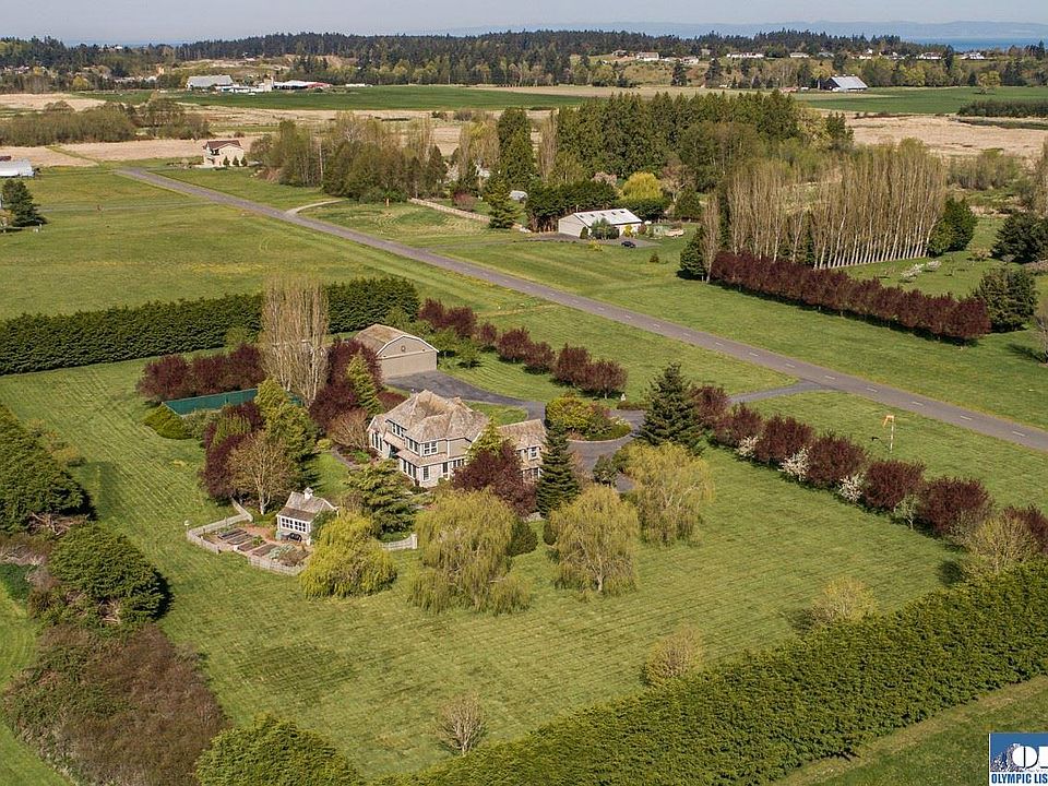 RARE OPPORTUNITY! Spectacular 5 acre property on private AIRSTRIP WA59 in a gated community with gracious 3BR/3.5BA home, hangar/shop, ADU & sport court! Beautifully appointed Highlander built home has chef's kitchen/dining, 2 amazing master suites w/fireplaces, living room w/fireplace, office/den, oak floors & large bonus room. Southern exposure & garden views, 9' ceilings. Tall windows & doors create a spacious light filled interior. Private park-like setting, patio, Mt. vistas & walk to Dungeness River.