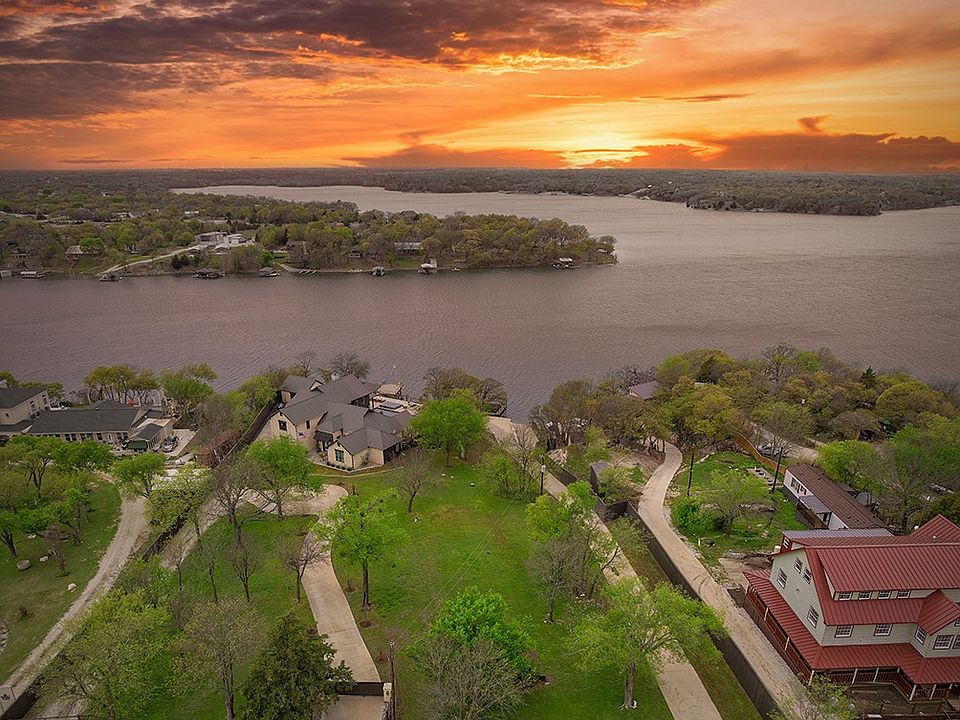 Selling FURNISHED! Magnificent lakeside sanctuary, a luxurious retreat meticulously crafted for entertaining and creating unforgettable memories with family and friends with over 200' of lakefront property!This remarkable residence boasts four spacious bedrooms and four elegantly designed bathrooms,showcasing a wealth of high-end upgrades and features throughout,including custom cabinetry and stunning quartz countertops.Step into the chef-inspired kitchen,where culinary dreams come to life. Outfitted with premium stainless steel appliances,including double ovens and generous storage solutions, this kitchen seamlessly connects to the inviting living area.Here,a grand Austin stone fireplace serves as a breathtaking focal point, while expansive windows provide panoramic views of the serene lake and enchanting sunsets.The primary suite offers a tranquil escape,thoughtfully positioned behind the living space,featuring captivating vistas and direct access to the back porch.Indulge in the sophisticated primary bathroom, complete with dual vanities, a luxurious freestanding soaking tub,and a spacious walk-in shower.Across from the primary suite, the home office with elegant built-ins ensures a productive workspace, while a guest suite adjacent to the kitchen provides comfort for visitors.Venture upstairs to discover a sprawling second living area, game room,and two additional bedrooms,accompanied by a stylish shared bathroom that maintains the home's elegant aesthetic.Outdoors,this property transforms into an entertainer's paradise with enchanting custom lighting,a Zen-inspired pool featuring a sundeck, spa, a cozy firepit,and a built-in grill and bar that overlooks the picturesque lake.A private beach area invites relaxation and fun,while two well-equipped docks cater to all your aquatic adventures.With breathtaking views and deep waters,this luxurious lake house offers the perfect setting to savor the joys of lake life.Don't miss your opportunity to live in lake luxury!