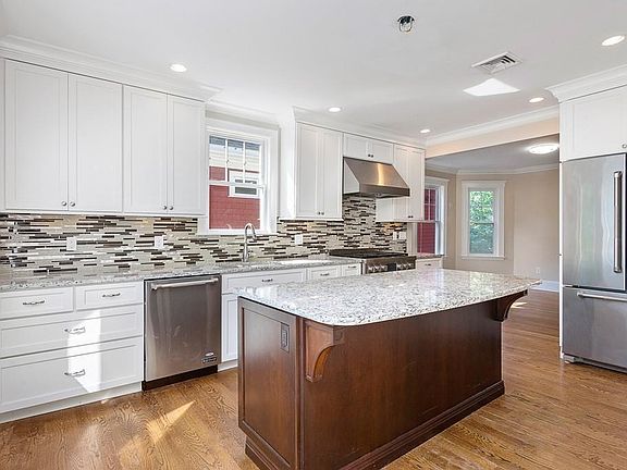Stunning condominium-quality apartment in the heart of West Cambridge. This 2nd & 3rd floor unit was gut renovated in 2013 and features an open floor plan, perfect for entertaining. Granite kitchen with island seating, Jenn-Air appliances and wine storage. Both 3rd floor bedrooms feature en suite baths with ceramic tile showers and double sinks. Third bedroom is on main living level. Full bath on main level features jetted tub. Hardwood floors throughout, high ceilings, central air conditioning, in-unit laundry, and recessed lights are just some of the features. Tons of natural light. Gorgeous brick patio, perfect for grilling and enjoying warm summer nights. Mature perennial garden. Prime location in West Cambridge easily accessible to Harvard Square, Harvard University, BB&N & Shady Hill.