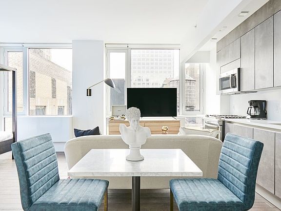 Sleek, Stylish & Luxurious, Welcome Home to The Mason Exceptionally crafted with premium finishes and detailing, this large alcove studio unit can be flexed into a 1 bedroom. Features: - Fits king size bed, living & dining area - Laundry in unit - Bluetooth surround speakers - Modern Italian kitchens - Large bathroom with generous storage in mirrored cabinets, rain showers, glass doors and black matte fixtures - Roof terrace with BBQ grills and stunning panoramic city views - Resident lounge - Courtyard patio - Fitness center - Live-in Super Just steps away from 6, NQRW, & BDFM subways, and minutes to Penn Station. Please text David for showings!