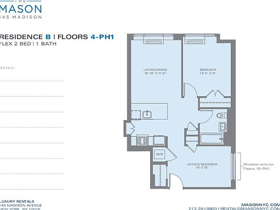 Sleek, Stylish & Luxurious, Welcome Home to The Mason Exceptionally crafted with premium finishes and detailing, this 2 Bedroom unit can be flexed into a 3 bedroom or a 1 bedroom with home office. Apartment Features: - Extra closets & floor to ceiling pantry - Modern kitchen -Stainless Steel Appliances - W/D in unit - Bluetooth surround speakers - Spacious bathroom; features generous storage in mirrored cabinets, rain showers, glass doors and black matte fixtures - Roof terrace with BBQ grills and stunning panoramic city views - Resident lounge - Courtyard patio - Fitness center - Live-in Super Just steps away from 6, NQRW, & BDFM subways, and minutes to Penn Station. Please text Irma for showings! Smoking allowed:No