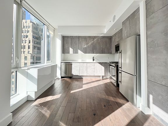 Brand new Penthouse 1 Bedroom / 2 Bath Residence with amazing views! Features: - Floor to ceiling windows in living room, dining room & kitchen produces abundant sunlight exposure. - Modern Italian kitchens - Washer/Dryer in unit - Bluetooth surround speakers - Large bathrooms with generous storage in mirrored cabinets, rain showers, glass doors and black matte fixtures - Rooftop with BBQ grills and stunning panoramic city views - Resident lounge - Courtyard patio - Fitness center - Live-in Super Just steps away from 6, NQRW, & BDFM subways, and minutes to Penn Station.