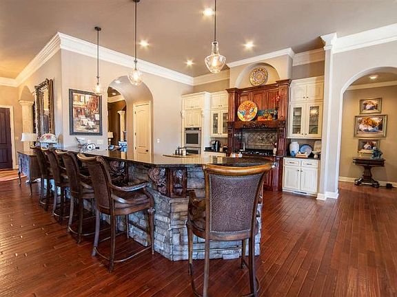 Unique country home was built by veteran home builder as personal residence. Buy less or more land. All 4000+ - sq ft brick home with 4 br, 3 ba. Master br has lge ba w custom cabinets, walk in tiled shower and lge walk in closet. 2 brs share Jack and Jill ba w their own custom cabinet and sinks. Family friendly kitchen, hand scraped hardwood throughout The extra garage safe rm pool house w bath, wood burning fireplace. Outdoor kitchen, 16x40 fiberglass pool. Covered porch and patio.