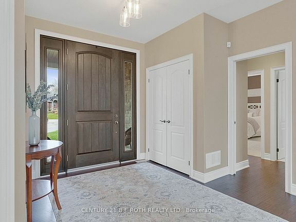 Welcome to your Snow Valley sanctuary, where luxury meets comfort in every corner! This sprawling 3,797 sq ft custom built home boasts 4 bedrooms plus a den and 5 bathrooms, offering ample space for both relaxation and entertainment. As you step through the grand entrance, prepare to be dazzled by floor-to-ceiling windows bathing the interior in natural light, accentuating the hardwood floors and exquisite finishes. Immerse yourself in a freshly painted interior, exuding a bright and inviting atmosphere that welcomes you home. Your culinary dreams come to life in the custom-designed kitchen, complete with top-of-the-line appliances and a sprawling island perfect for both cooking and entertaining. But the luxury doesn't stop there, indulge in the unexpected delight of heated floors, not just in the kitchen, but in 3 of the 5 bathrooms. Elevate your entertainment experience with a state-of-the-art sound system seamlessly integrated throughout the entire home, including the garage, ensuring every corner resonates with your favorite tunes. Venture downstairs to discover an expansive wet bar and a walk-out that seamlessly connects indoor and outdoor living. Outside, the backyard is nestled against environmentally protected land, while the beautifully crafted patio, adorned with stunning stone work and a cozy fire pit, sets the scene for relaxing evenings under the stars. Embrace the holiday spirit with ease, thanks to strategically placed soffit and front yard plugs designed to effortlessly showcase your festive decor arrangements. With a heated and insulated garage, inside entry, and main floor laundry, convenience is seamlessly integrated into every corner of this lavish retreat. Positioned just moments from the vibrant city of Barrie, yet cocooned in the serenity of Snow Valley, this residence offers the perfect fusion of luxury and lifestyle. Don't just dream of an extraordinary living experience, make it a reality in this captivating Snow Valley haven!