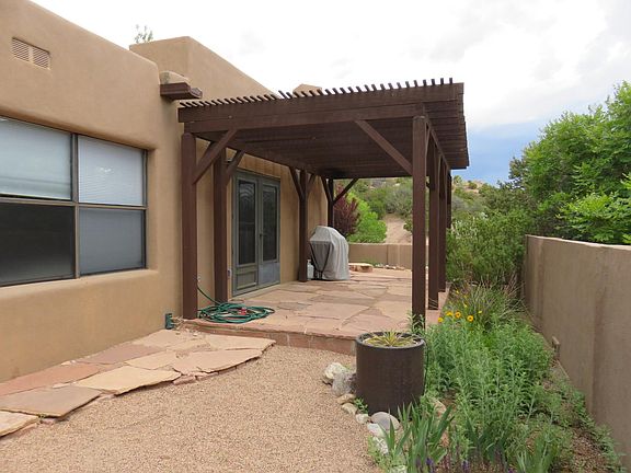 Ideally located on a cul-de-sac within a 3-5 minute drive to downtown and easy access to US 84 & 285 to Los Alamos. It is within walking distance to Frank S. Ortiz dog park with access across the cul-de-sac to another dog walking trail. Great views of the city and a locked gate door to a private backyard containing flagstone patio, pergola, and 2 fountains. All rooms are on the same level (no steps inside) with a 2 car attached garage, Central heat & air. W/D in laundry, security alarm system provided, and reverse osmosis drinking water. Pet friendly with fee. Gonzales Community Schools district. Newly painted, new carpet and a new roof.