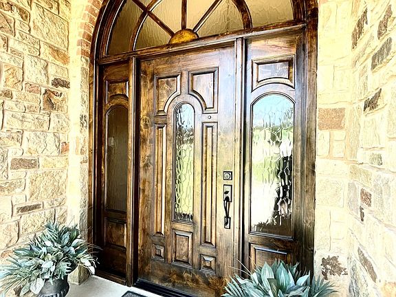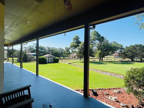 Meticulously maintained, hill country home with numerous premium features and upgrades built by JDL Custom Homes! Enter through the oversized, custom, knotty alder and glass front door into super high, vaulted ceilings, arched entry and breathtaking views of a park-like, backyard setting through architectural windows. Looking for a super spacious kitchen? Look no more! This kitchen can easily accommodate several people at once, and features an expansive bar counter, high-end, stain-grade, custom cabinetry and granite countertops. Open design is perfect for entertaining! The primary suite and bath are equally roomy with separate vanities, jetted tub and shower. 100% masonry exterior with full stone facade to the gables, beautiful and energy efficient! Over 570 sq. ft. of covered porch for outdoor enjoyment year round. Backyard also features a lovely wooded picnic area. Jaw-dropping, gorgeous lawn! Specialty sod with 13 zone sprinkler system. HCTC high speed fiber optic internet. New roof and gutters 2020, upgraded HVAC 2021, new water heater 2021. The quality, beauty, and pride of ownership of this home will blow you away!