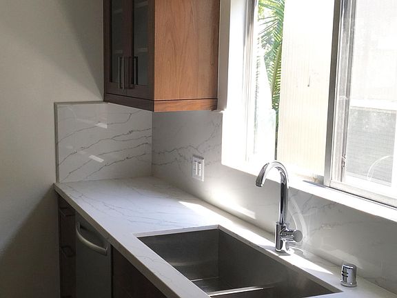 This is a stylish apartment on the top floor of a late mid-century building on a tree lined street in Beverly Hills. The living room is expansive, with a tall bank of windows looking out into tree tops. There is wonderful morning light. There are new wooden floors throughout the apartment and a newly remodeled kitchen with beautiful marble countertops. Behind a plantation shuttered door are the bedrooms. The bedrooms are at either end of a hallway with a bathroom in the middle great for privacy. The master is peaceful & quiet and has it s own bath room with a skylight. The second bedroom is lovely and light filled. There is generous closet and storage space, a shared on site laundry and it comes with two tandem parking spaces. This is a great neighborhood ~ minutes from downtown Beverly Hills and West Hollywood. Unfortunately this is a no dogs building. Call Allegra for a showing at 310-991-0474