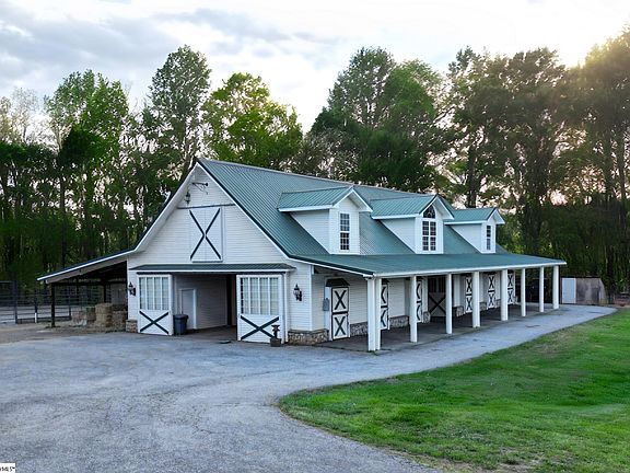 Stunning Equestrian Property//Horse Farm//13+ Acres//Classic Farmhouse Welcome to your dream equestrian property nestled in the heart of Tigerville, a stone's throw away from Landrum's renowned equestrian and fox hunting country. This stunning 13+ acre horse farm boasts a classic farmhouse with breathtaking Blue Ridge Mountain views and all the amenities a horse enthusiast could ever desire. Situated amidst meticulously maintained grass pastures and overlooking a fully stocked spring-fed pond, this custom-built two-story farmhouse spans over 3700 square feet and is complemented by a matching 5000 square foot center aisle barn. It's a horse person's paradise! Conveniently located just 40 minutes from the prestigious Tryon International Equestrian Center, 25 minutes from FENCE, and within easy reach of Greenville, SC, Asheville, NC, and Aiken, SC, this property offers proximity to top-notch equestrian venues, fine dining, shopping, and medical facilities. Step inside the farmhouse and be enchanted by the open-concept floor plan featuring gleaming hardwood floors, a grand stone fireplace in the great room, and a spacious formal dining area. The kitchen, adorned with granite counters and stainless steel appliances, opens to a bright sunroom and a massive walk-in pantry and laundry room. Retreat to the master suite on the main level, complete with its own stone fireplace, sunroom, and a luxurious en suite bathroom boasting a soaking tub and custom closet. Downstairs, a fully conditioned flex room awaits, perfect for a den, home office, or entertainment space. Upstairs, discover four additional bedrooms with ample closet space and a full bathroom. Outside, the property showcases its true beauty with an inground pool, jacuzzi, custom waterfall, firepit, pergola, and raised garden beds - an entertainer's paradise! Equestrian amenities abound with the well-maintained center-aisle barn featuring 5-6 stalls, wash rack, tack room, feed room, tool room, and hay storage. A newly completed 100' x 200' riding arena and a 60' round pen provide ample space for training and exercise. Additional features include separate water heaters and septic systems for the house and barn, a Generac home standby generator, RV hookups, and high-speed fiber optic internet. Don't miss this rare opportunity to own a piece of equestrian paradise in the heart of Tigerville. Schedule your private tour today and make your equestrian dreams a reality!