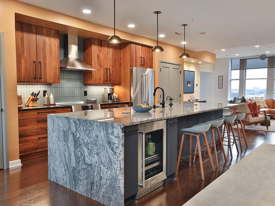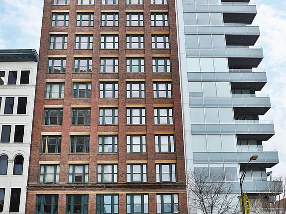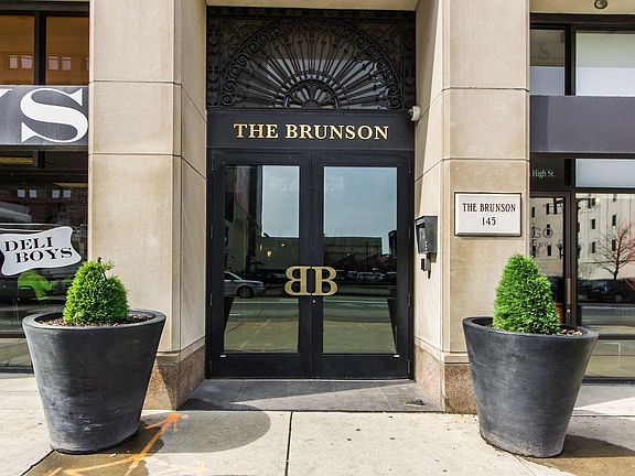 Welcome to the historic Brunson building! Downtown condo living in award winning style. Rare opportunity for upper level, large unit. With only 2 units per floor, privacy and views are maximized! Gleaming hardwood floors and lots of natural light. Newly renovated kitchen boasts an oversized island, walnut cabinetry, custom storage and sound system. Stunning designer light fixtures by Andrew Neyer. Dedicated primary suite with attached bath and walk-in closet featuring an Elfa closet system. Remodeled hall bath features shower with floor to ceiling tile. Bright sunroom leading to private outdoor terrace. This unit comes with a 12x12 storage unit, 2 secure garage spaces, 2 designated bike storage spots, fitness room, rooftop patio & panoramic views! Variety of restaurants around the block!