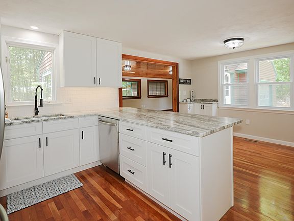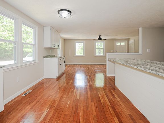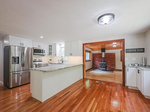 Amazing location for this 3 bedroom, 3 bath, remodeled Ranch in Chester NH! Entertain with ease in the new kitchen with granite countertops, coffee bar, open concept to dining room and living room. Gorgeous 17x15 master bedroom with hardwood floors and custom tile walk-in shower with 2 shower heads! Nice wooded lot with 2.28 acres of land. Brand new leach field, mostly new windows, deep garage for storage, and plenty of parking! Agent interest