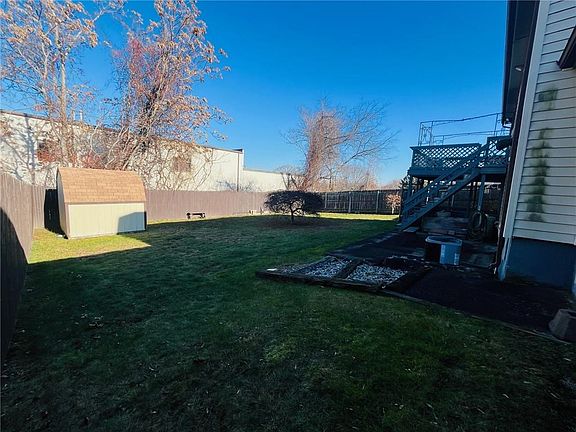 Welcome home to this 2-3 bed 1 1/2 bath raised ranch nestled on a quiet dead end street in the heart of Cranston! As you walk inside, the upstairs consists of 2 full bedrooms, 1 bath, living room, kitchen and dining room opening up to a good size deck through a rear sliding glass door. The lower level consists of a large front to back family room, an additional bedroom, and a half bath with laundry area. The roof is roughly 10 years old, newer heating system and Central A/C! The interior could use some cosmetic updating, leaving a blank canvas to make it your own! The exterior has a separate 1 car garage, good size driveway, vinyl siding and fenced in back yard. This is a great opportunity for the price in this neighborhood! Close to all amenities, and wonderful restaurants within a mile radius. Property being sold "AS IS".
