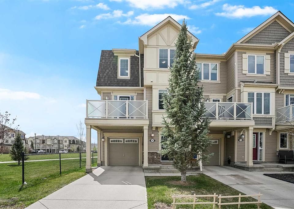 Discover this exceptional three-storey corner townhouse in Windsong - it’s a rare find WITHOUT condo fees! Perfectly positioned beside serene green walking paths and just steps from schools and playgrounds, this inviting home offers the ideal blend of natural beauty and friendly neighborhood conveniences. You’ll enjoy the privacy of sharing only one common wall, while added windows along the exterior flood the interior with natural light. Step inside to find a welcoming foyer with a coat closet and space for additional furniture. There’s also direct access to the attached single garage and a private laundry room tucked away on this lower level. The main level reveals an airy and open design featuring a wide living room with multiple options for positioning furniture. The warm kitchen cabinetry harmonizes beautifully with coordinating countertops and quality stainless steel appliances; including a brand new refrigerator with a waterline AND a brand new dishwasher. A charming window-side reading bench creates the perfect nook for quiet moments, while the keyhole design from the kitchen sink provides views to the formal dining area. This formal space offers access to a front-facing balcony overlooking the green space and more. What truly distinguishes this home is its collection of exquisite designer wallpapers imported directly from Germany, each selected for its unique texture and timeless appeal. Professionally installed throughout key feature rooms including: the dining room, main floor powder room, and both upstairs bedrooms. These sophisticated wall coverings elevate each space tastefully. Upstairs, the primary bedroom suite features a generous walk-in closet and direct views to the walking path, it also has immediate access to the 4-piece bathroom. The secondary bedroom is a functional space ideal for children, guests, or serves well as an office. This exceptional property has an ENVIABLE location - You’re walking distance to schools, playgrounds, and scenic ponds, while also only being a few kilometers from a vibrant shopping district. With the remarkable advantage of NO condo fees, this townhome presents outstanding affordability. It’s the perfect blend of STYLE, COMFORT, and VALUE in one of Airdrie's most convenient communities. Let’s not forget, your only 10 minutes to Cross Iron Mills and 12 minutes to Calgary limits from here. Be sure to view the virtual iGuide, and book your showing today!