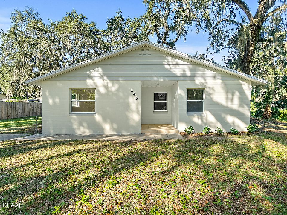 Don't miss your opportunity to own this remodeled 3 bedroom, 2 bath home with NEW ROOF. The bright and airy completely updated kitchen offers NEW modern cabinets, NEW stainless steel appliances, NEW flooring, and pantry. When night falls, there's room for the whole family here with 2 spacious guest bedrooms, an updated guest bath, and a master bedroom offering a beautiful, updated ensuite bath with walk-in shower. Other fantastic features here include: NEW A/C, fresh exterior paint, freshly painted interior, NEW luxury vinyl plank flooring, partially fenced yard with shed for additional storage, and a neighborhood with NO HOA. Just a beautiful home where mountains of amazing new memories await you. The home is a short drive from the soft sands and rolling ocean waves of New Smyrna Beach. This central location offers easy access to restaurants and shopping spots! Act fast, and this HOME could be yours. Don't delay, schedule your showing today!