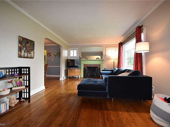 Charming home and neighborhood! The first floor features a living room with fireplace, dining room with access to covered patio/deck, eat-in kitchen, full bath and den/bedroom. The second floor offers 3 additional bedrooms and a full bath! Attached garage, newer windows, professionally waterproofed basement with warranty and more!