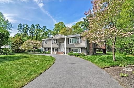 The curb appeal is amazing on this beautifully maintained home located in Ramblewood, one of Raynham's most desirable neighborhoods. This nearly 2500 SF home has an IN-LAW potential and has many features and updates throughout. The main level features a white kitchen with new stainless steel appliances, formal living and dining rooms with hardwood flooring, 3 bedrooms, a full bath fully renovated and spacious great room with vaulted ceiling with sliders leading out to a wrap around deck overlooking a very large level and private backyard. The lower level features a family room with fireplace including a bar area and office nook, updated full bath, kitchenette, bedroom and laundry area. Makes a great Au Pair on In-Law Suite. Gas Heat, central air conditioning. Many updates including new roof, vinyl siding, double pane thermal windows,new slider to deck (2014), fully renovated bathrooms (2016). hot water heater (2017) . Showings begin at the first open house on Sunday 6/2 from Noon-2PM