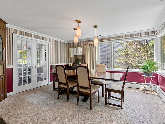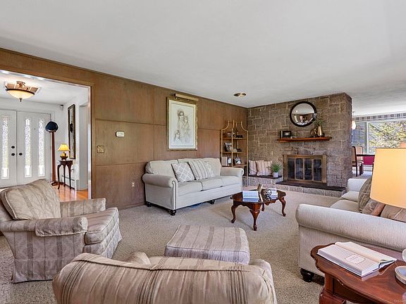 Offered for the first time in 75 years, 145 Reservoir Road is a rare mid-century modern gem that perfectly blends timeless design with modern comfort. Set on a beautifully landscaped half-acre just steps from Shuttle Meadow Golf Course and the Reservoir, this 5-bedroom, 4 full and 2 half bath home captures the essence of classic mid-century living with distinctive architectural details and a seamless indoor-outdoor flow. The main level offers over 3,200 sq. ft. of light-filled living space, highlighted by expansive windows, bow window accents, rounded wall corners, warm wood paneling, and hardwood floors. The renovated eat-in kitchen combines modern updates with original character, while the spacious primary suite offers a walk-in closet and private bath. Two additional bedrooms and a full bath on the upper level provide comfort and flexibility for family or guests. The sunlit, walk-out lower level adds exceptional versatility with a full bath, bar/kitchenette, laundry area, and multiple living zones-ideal for an in-law suite, guest quarters, or creative studio. Modern upgrades include a heated two-car garage, multi-zone heating, central air, a new roof, newer windows, in-ground sprinklers, and city water, sewer, and gas. The expansive patio and lush private yard create a tranquil setting for entertaining or relaxing. With its iconic double front doors, clean lines, and premier location, 145 Reservoir Road is more than a home-it's a timeless legacy.