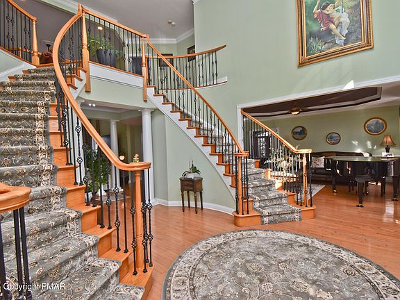 EXQUISITE 6BD/6.5BA Estate in Private Golf Community. The GRAND Foyer w/ a dual staircase leads to the Formal Living & Dining Room, a spacious Eat-in Kitchen w/ granite counters, a massive island, ample cabinetry, & SS appliances. The STUNNING 2-story Great Room features floor-to-ceiling windows, a fireplace. A CONSERVATORY, office, mudroom, laundry, & half bath complete this level. Upstairs, the Primary Suite boasts a sitting room, 2 large WIC, & a spa-like ensuite w/ dual vanities, a jetted tub, & a sep shower. 3 additional SUITES provide space & privacy. The finished walkout basement includes a large rec room, workout room w/ a full bath, & a sep living area w/ a Kitchen, 2BDs, & a full bth, ideal for guests or extended family. Outside, the expansive deck overlooks the scenic golf course. A 3-car garage, circular driveway, & beautifully landscaped grounds complete this remarkable home. Located just 90mins from NYC & Philly, & mins from major highways, ski resorts, & premier Pocono attractions, this estate is a true hidden gem. Thoughtfully designed w/ artistic & cultural influences, this home offers an exceptional lifestyle. Schedule your private tour today!