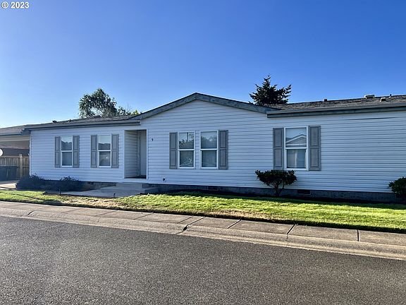 Manufactured home in the wonderful and well maintained 55+, gated Farmview Park in Junction City. Home sits on the back loop, next to the lovely picnic/park area. Excellent separation of space, 3 bedroom/2 bath, w/separate office. Large primary bedroom w/ensuite bathroom and walk-in closet at one end. Office, 2/bedrooms and hall bathroom at the other. 1512 sqft. Low park fees of $390/mo. Park provide road mant., picnic area, garbage, lawn care equipment and new back fence coming soon. A little TLC, imagination and your color pallet will make this your perfect home. Schedule now to see!
