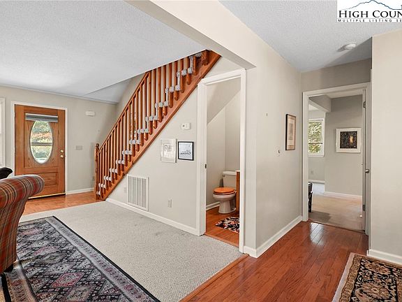 OPEN HOUSE ALL DAY SATURDAY 10.15.22 Turn-key, low-maintenance 3/2.5 Cape Cod with large bay window and gas fireplace in living rm. Home has level lot, yard, and driveway plus 2-car attached garage with attic area. Large covered front porch in addition to back deck overlooking back yard, backs up to a creek. Quiet cul-de-sac, beautiful neighborhood in convenient Foscoe near Boone, Valle Crucis and Banner Elk. House sits on 100% usable 1/2 acre level lot. Large bedrooms. Enjoy river access across the street and flat, walkable streets. This home is offered fully furnished.