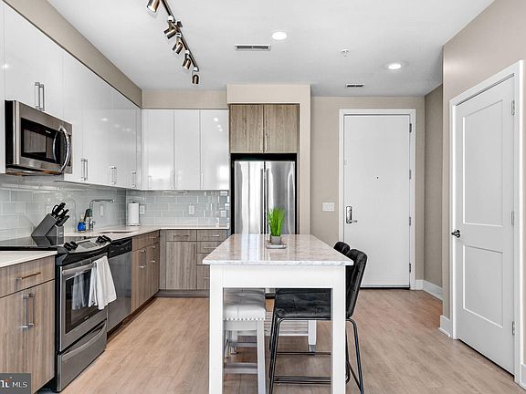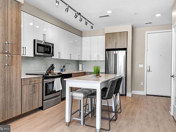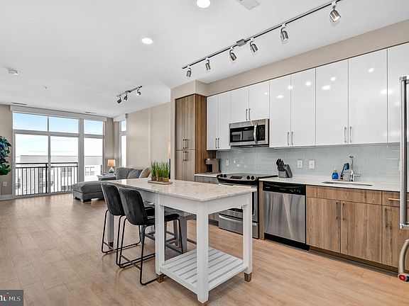 Resort-Style Living at National Harbor – Welcome to The Haven Experience luxury in this top-floor, west-facing condo at The Haven in National Harbor. This stunning 1-bedroom, 1-bath home comes with a rare 140-cubic-foot secured in-building storage unit (purchased in 2019 for $7K) and includes gated reserved parking. It also features a newer full-size Samsung front-loading smart washer and dryer, installed in January 2023. Boasting floor-to-ceiling windows, a Juliet balcony, and a unique corner window, this light-filled unit offers breathtaking horizon views perfect for sunsets, MGM’s glow, and holiday fireworks—right from your living room. With high ceilings and an open floor plan, the home is beautifully finished with birch wood-style luxury vinyl plank (LVP) flooring throughout. The contemporary kitchen featuring: Stylish cabinetry with ample storage, An ethereal glass subway tile backsplash, Sleek quartz countertops with a freestanding island, A Grohe faucet, and Stainless steel appliances. The expansive living area seamlessly blends space for relaxing, dining, and entertaining. The generously sized bedroom includes a walk-in closet, while the adjoining spa-like bathroom dazzles with modern tile and marble veining, a walk-in shower with a glass enclosure, a double quartz vanity with Moen fixtures, and a large linen closet. Building Amenities: Step beyond your personal sanctuary and enjoy an array of resort-style amenities: Multiple lounges with WiFi, workstations, and a party room with a kitchenette, TVs, and a billiards table. A fully equipped gym, a heated outdoor pool, and relaxing lounge areas. A pet spa with grooming facilities. Climate-controlled bike storage and Amazon package lockers. The building also offers keyless fob entries, the Kastle App for remote access, regular HVAC maintenance, and a friendly concierge to handle guest arrivals and package notifications. Prime Location The Haven is a LEED-certified residential building located just two blocks from the waterfront. Explore walking and biking trails, indulge in the vibrant National Harbor dining and shopping scene, or take advantage of easy commuting options to D.C., Northern Virginia, and Maryland.