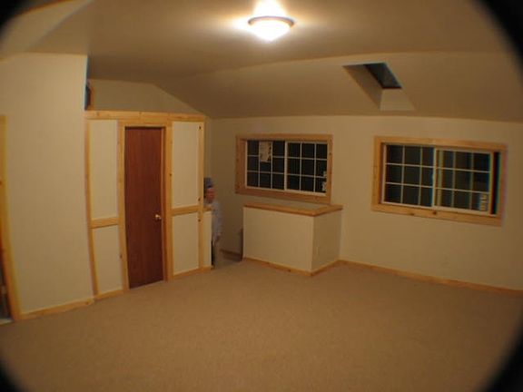 The house is flexible, but most use downstairs 10x20 area for a living room (with separate kitchen, very small 2nd bathroom, and washer/dryer hookups in the closet.