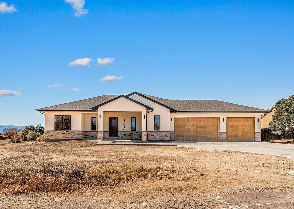 Welcome to your dream home just minutes from the Pueblo West Golf Course! This stunning new build offers modern design, quality craftsmanship, and thoughtful details throughout. The bright, open-concept kitchen features quartzite counters, white oak shaker cabinets with soft-close drawers, and modern appliances. Enjoy the walk-in pantry with built-ins and eat-in kitchen island, perfect for entertaining or family meals. Kick-off your shoes in the conveniently located mud room right off the large 3-car attached garage. Relax in the spacious primary suite complete with an en-suite bath and walk-in closet. Built with durability in mind, the home includes true 9' ceilings, recessed lighting, tankless water heater, central A/C, Aquapex plumbing, composite roof with Class 4 shingles, and a full concrete crawlspace create a comfortable and sturdy home built to last. Sitting on a corner lot with no HOA restrictions, this home combines modern luxury with low-maintenance living in a highly desirable location. Come see this exceptional Pueblo West home—where quality, comfort, and style meet!