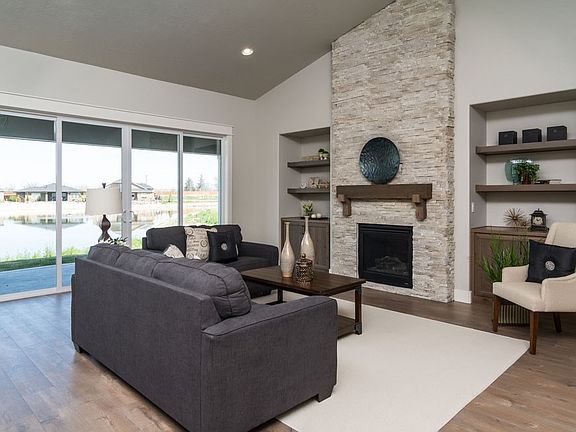 The Piedmont by Berkeley Building Co. is a refreshing waterside, Energy Star Certified/HERS rated home that reflects the splendor of its surroundings. Rich interior finishes & lrg picturesque windows set the tone for this single-level, open plan boasting main living vaulted ceilings. Custom cabinetry, slab quartz countertops, designer tile, hrdwd floors & SS Bosch appliances. An expanded, covered back patio creates an ideal indoor/outdoor living experience in the beautiful Heron River. Photo similar