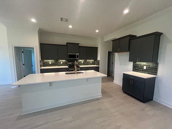 The KLEIN III A in The Settlement at Live Oak community offers a 4 bedroom, 3 full bathroom open design. Features: double vanity, garden tub, separate shower, and walk-in closet in the primary suite, primary closet goes through to the laundry room for added convenience, tray ceiling in the primary bedroom, double vanity in the second bathroom, a kitchen island overlooking the living room, spacious walk-in pantry, mud room with boot bench, covered front porch, covered rear porch, side-entry garage, recessed lighting, undermount sinks, cabinet hardware throughout, custom framed mirrors in all bathrooms, ceiling fans in the living room and primary bedroom are standard, smart connect wi-fi thermostat, smoke and carbon monoxide detectors, post tension slab, automatic garage doors with 2 remotes, landscaping, architectural 30-year shingles, flood lights, and more! Energy Efficient Features: a tankless gas water heater, a kitchen appliance package with a gas range, low E tilt-in windows, and more!