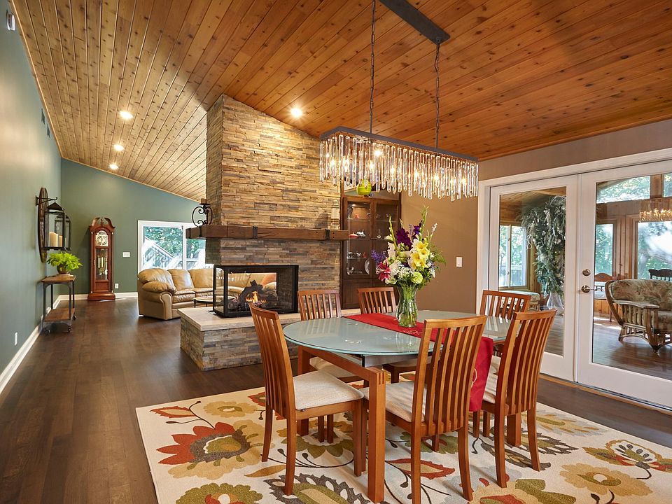 Step inside and be welcomed by soaring vaulted ceilings, a show-stopping stone fireplace, and panoramic windows that capture the lush summer greens, golden fall canopies, and quiet snowfalls in winter.