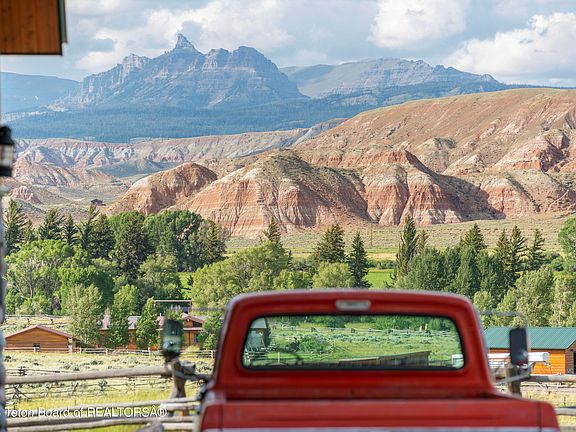 Wyoming in High-Def! This carefully crafted home is centered around the great room and attached dining room that features unparalleled views of the Ramshorn, Absarokas and Dubois Badlands. A wraparound deck allows you and your guests to absorb this grandeur outside. Located in the Stoney Point subdivision, this home offers freedom from restrictive CC&R's and HOA's. The interior of the home is beautifully appointed with a mix of classic details such as transoms and traditional western log and beam work. While the main house features a little over 3000 square feet of living space and ground floor access from the back. What sets this house apart is the separate 1,100 square foot apartment attached to the main house with its own access. 2023-08-20