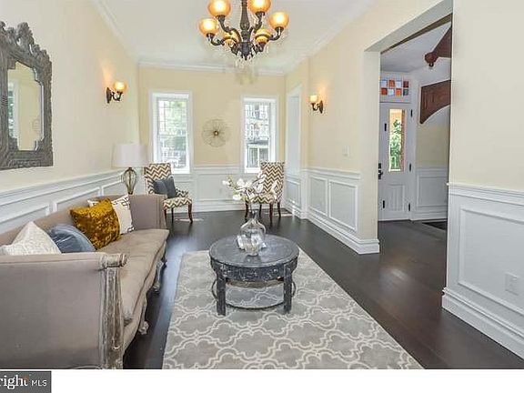 Rent a piece of Philadelphia History with this red brick Queen Anne style twin home with characteristic Eastlake architectural styling. This home was originally built in 1882 and has been fully renovated and restored to its greatness. This architectural gem features 4 bedrooms, 2.5 bathrooms, a fully finished basement and 14 foot tall ceilings on the primary living area. The main level consists of a living room, sitting room, a dining room and a modern kitchen with stainless steel appliances. The main entrance creates a grand center hall with original switchback stairs, in varnished wood carved in the Eastlake style. There is mantelpiece in the main living room with original woodwork and inset tiles with a center tile depicting a scene of the Wissahickon Creek. The second floor consists of three bedrooms, both with ample closet space plus a shared full bathroom and hallway laundry closet. One of the bedrooms was converted into a wardrobe and can remain as is or be taken out and used as a bedroom. The master suite boasts built-in closets, bathroom with dual sink vanity, frameless glass shower and a stand-alone tub with hydrant faucet. The third floor is an open loft bedroom spanning the entire floor with a pitched roof that adds charm. The outdoor spaces include a private back patio area and a large wrap around porch in the front overlooking the garden and front lawn. The front facade is adorned with a restored ornate bracketed cornice with decorative eave returns just below the gabled third floor. The gable contains restored decorative wood elements below and along the eave. The new custom windows were designed to mimic the original wood windows, with classic Queen Anne upper sashes comprised of one large center pane and smaller panes wrapping around it. This historical gem is located in the coveted neighborhood of Wissahickon. This tranquil Philadelphia neighborhood is just a short walk to the Wissahickon park trails & train station with easy accessibility to Manayunk's Main Street, Center City, major highways and the suburbs. The house can be rented partially furnished. There is private parking for two cars behind the house.