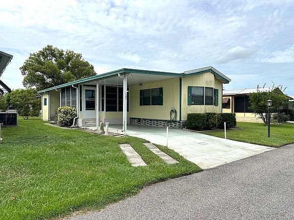 MOTIVATED SELLERS! HOME IS PRICED TO SELL. 2-BEDROOM, 2-BATHROOM HOME IN GOLF COMMUNITY, ANGLERS GREEN! Step into this bright and open home featuring a large eat-in kitchen and indoor laundry for added convenience. This home has been well maintained and is ready for its next owner. Enjoy the beautiful Florida weather in your all-season, Florida room. The perfect place to enjoy morning coffee or an evening drink. **Home is being sold as furnished, as described. Anglers Green is an active 55+ community in Mulberry, FL. 80/20 rule applies where residents must be 45+. Community Pool and Hot Tub. Nine-hole golf course. Private fishing lake. Shuffleboard courts. Pets welcome (2) under 40 pounds with breed restrictions. Motorcycles allowed. Storage available in park. Lot rent is $576 monthly. Water Use Tax is $186 annually. Measurements are L x W KITCHEN: 13 x 12 • Vinyl Flooring • Window Coverings • Ceiling Fan with Light • Refrigerator - Whirlpool • Range - Whirlpool with Vent Hood • Microwave - Emerson • Wood Cabinets • Pantry - 1 • Eat-in Kitchen - Table with 4 Chairs LIVING ROOM: 15 x 12 • Carpet Flooring • Window Coverings • Ceiling Fan with Light • Sofa • Rocker Recliner - 2 • Coffee Table - 1 • End Table(s) - 1 • Lamp(s) - 3 • TV with Console MAIN BATH: 5 x 7 • Carpet Flooring • Single Sink • Tub-Shower • Mirrored Medicine Cabinet PRIMARY BEDROOM: 11 x 12 • Carpet Flooring • Window Coverings • Ceiling Fan with Light • Closet: Walk-in: 4 x 3 & Standard • Double Size Bed • Bedside Table(s) - 2 • Lamp(s) - 2 • Dresser - 1 • Chair(s) - 1 • Desk - 1 PRIMARY BATHROOM: 4 x 8 • Laminate Flooring • Window Coverings • Single Sink • Walk-in Shower • Mirrored Medicine Cabinet SECOND BEDROOM: 9 x 7 • Carpet Flooring • Window Coverings • Closet: Standard • Double Size Bed • Bedside Table(s) - 2 • Lamp(s) - 1 • Dresser - 1 FLORIDA ROOM: 12 x 11 • Carpet/Concrete Flooring • Window Coverings • Chair(s) - 3 • Table with 2 Chairs • Located Off: Kitchen LAUNDRY: 6 x 5 • Carpet Flooring • Washer - Whirlpool • Dryer - GE • Located: Inside SHED: 6 x 10 • Concrete Flooring • Workbench • Shelving • Water Heater - Whirlpool PATIO: 11 x 10 • Concrete EXTERIOR: • Aluminum Siding • Single Pane Windows • Gutters • Single Carport • Roof Type: Metal • AC: Goodman COMMUNITY: • Gated Community • Heated Swimming Pool • Hot Tub • Clubhouse with Community Room • Shuffleboard Courts • Nine-Hole Golf Course • Fishing Lake The above information is not guaranteed. It is the buyer's responsibility to confirm all measurements, fees, rules and regulations associated with this particular park. This mobile home is sold "As Is" as described in the description above. There are no warranties or guarantees on this mobile home.