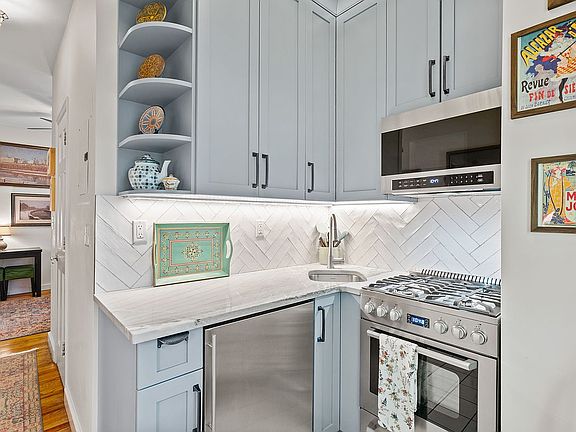 • Fully renovated, windowed kitchen with stainless steel appliances, quartz countertops, and custom cabinetry